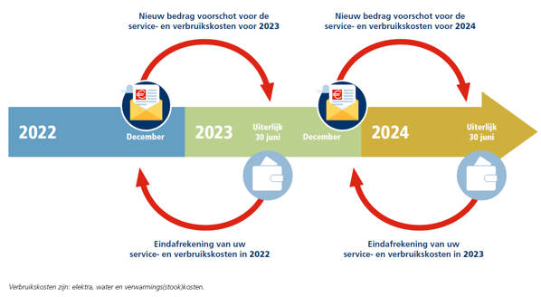 • Soms worden de servicekosten niet berekend over een heel kalenderjaar (van 1 januari tot en met 31 december).