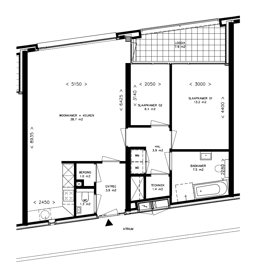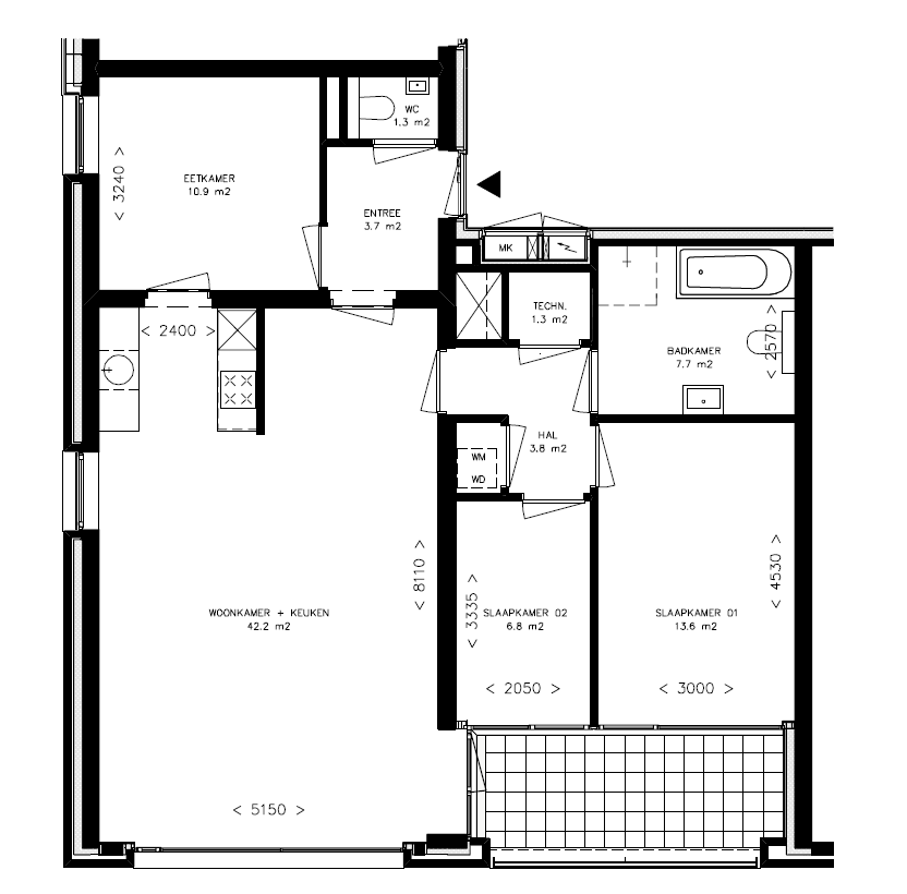 | Aantal slaapkamers | 2 of 3 slaapkamer(s) (13, 10 en 6,5 m² afhankelijk van type) |