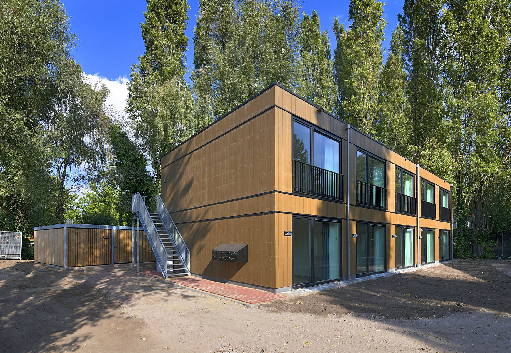 De woningen zijn modulair gebouwd. Dit betekent dat ze in een fabriek zijn gebouwd en op de bouwlocatie in elkaar gezet. Het is een snelle en efficiënte manier van bouwen, met dezelfde kwaliteit als permanente woningen. Deze woningen blijven hier minimaal 15 jaar staan.