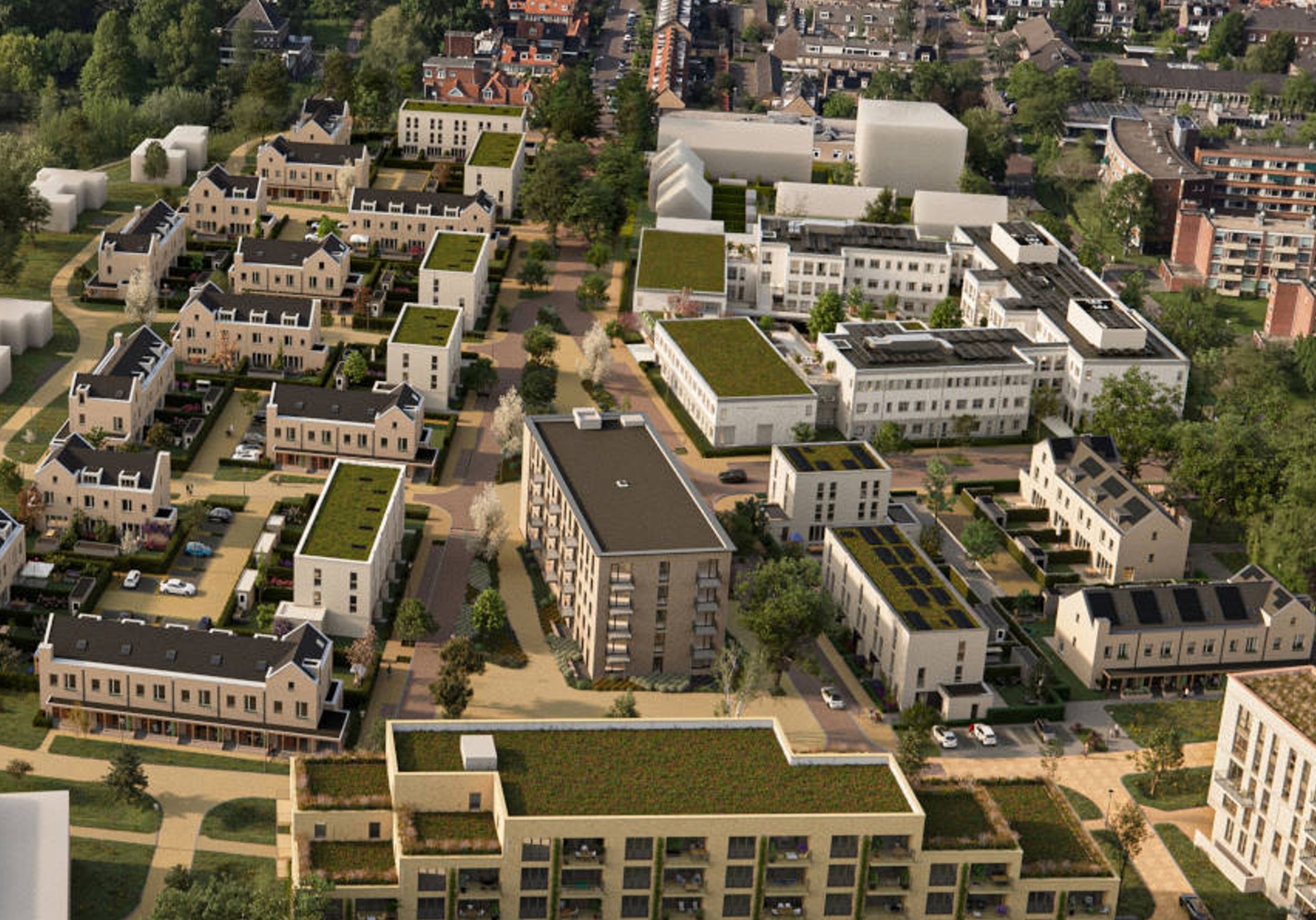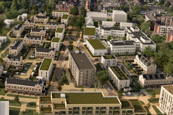 Het aangrenzende Zaartpark wordt betrokken bij de nieuwe wijk, waardoor het gevoel ontstaat van wonen in een groene omgeving.