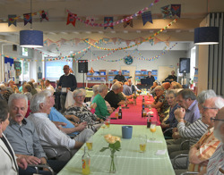 Dit najaar was het precies vijftig jaar geleden dat de flat aan de Hart van Brabantlaan werd opgeleverd. Dat werd gevierd met een gezellig jubileum. In wijkcentrum In de Boomtak stonden de bewoners met een lunch en woordjes stil bij het jubileum. De jubileumen bewonerscommissie begon een jaar geleden al met de voorbereidingen. Frans maakte een PowerPoint, met de geschiedenis van de Berkenflat en de omgeving, die de hele middag op een groot scherm in het buurthuis te zien was.