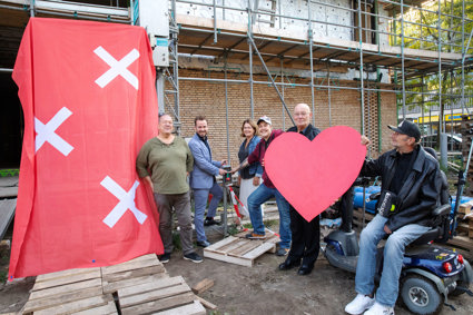 Betere een goede buur dan een verre vriend. Dat is de gedachte achter het gemengd wonen project in de Rijpstraat in Breda. Daarom ging donderdag 22 september, naast een vlag, ook een hart omhoog om het hoogste punt te vieren. In dit nieuwbouwcomplex ontstaat straks een levendige community waar iedereen meedoet en meetelt. Of je nu jong of oud bent, alleen of met z’n tweeën, met of zonder hulpvraag. De bewoners kiezen er bewust voor om een goede buur te zijn. Samen een kop koffie drinken, een buurtactiviteit organiseren, een handje helpen bij het plakken van een fietsband of bij de administratie. Zo ontstaat een woonplek waar iedereen zich thuis voelt.