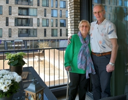 Nel (76) en Piet (76) van den Broeke woonden in een fijne eengezinswoning in de Olivier van Noortstraat in de Heuvel. Eigenlijk wilden ze er niet weg. Maar traplopen lukte bijna niet meer en ook lopen ging moeizaam. Toen ze hoorden dat ze konden doorstromen naar een gelijkvloers appartement op een steenworp afstand, besloten ze ervoor te gaan. “Het is ons alles meegevallen. We wonen hier heerlijk.”