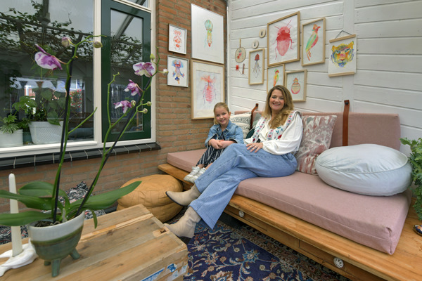 Joyce werkt als kunstenaar en illustrator. Dat is ook wel te zien aan haar interieur. Veel maakte ze zelf. En wat