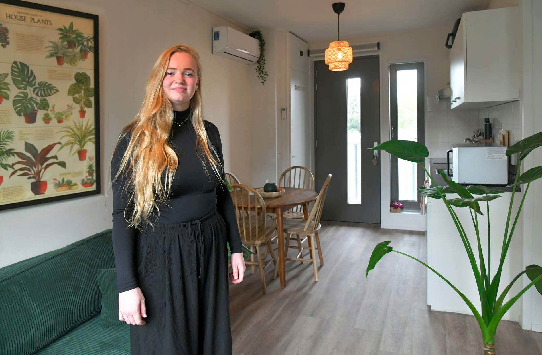 Bewoner Sanne Fekkes (25) woont sinds de zomer in de Frankenhoeve en is blij met haar plek: “Ik had niet echt een beeld van modulair wonen, maar het bevalt supergoed.