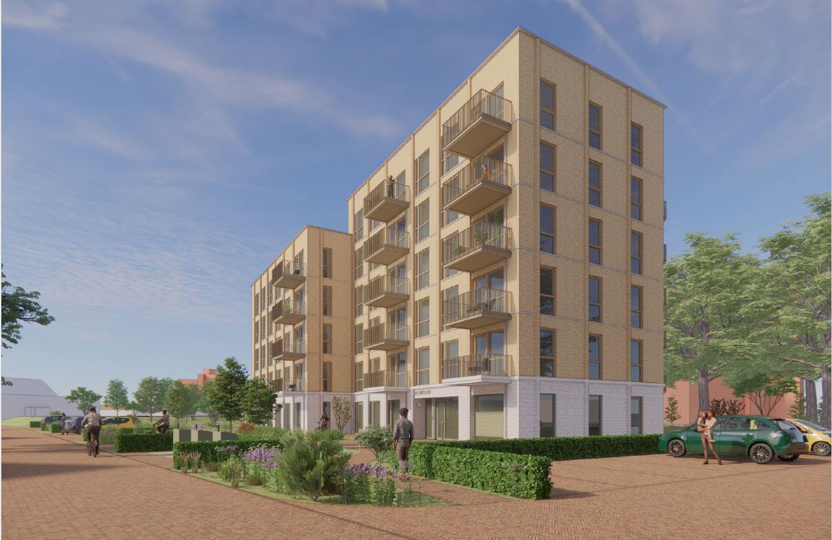 De buurtkamer in het appartementencomplex wordt een centrale ontmoetingsplek voor bewoners en de wijk, waarmee het project ook bijdraagt aan sociale verbondenheid.