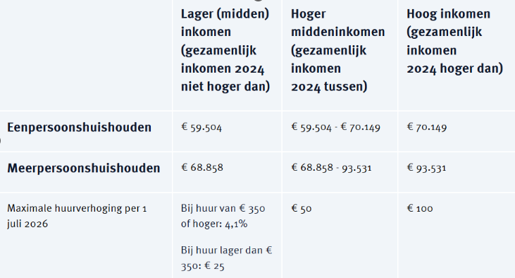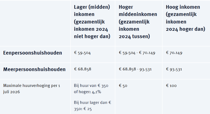 - Als je een inkomensafhankelijke huurverhoging hebt gekregen en je inkomen is in 2025 lager dan in 2024.