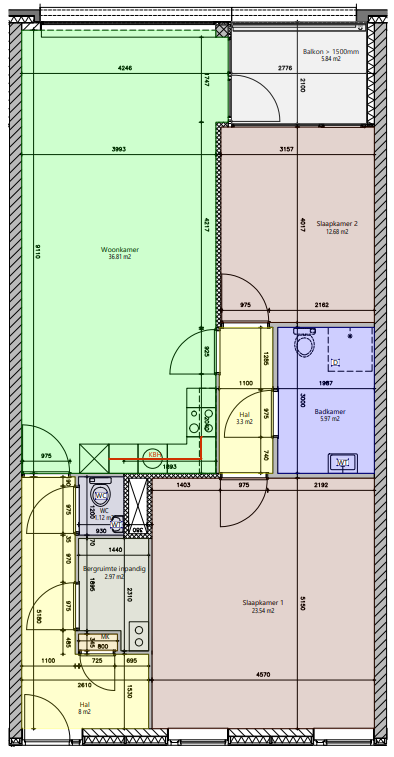 De plattegrond kan per appartement verschillen.