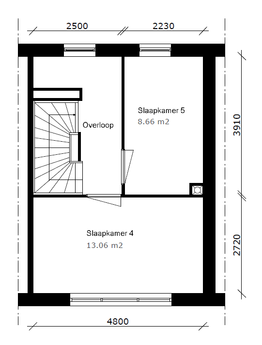 | Aantal slaapkamers | 5 (14, 13, 9, 8, 6 m²) |