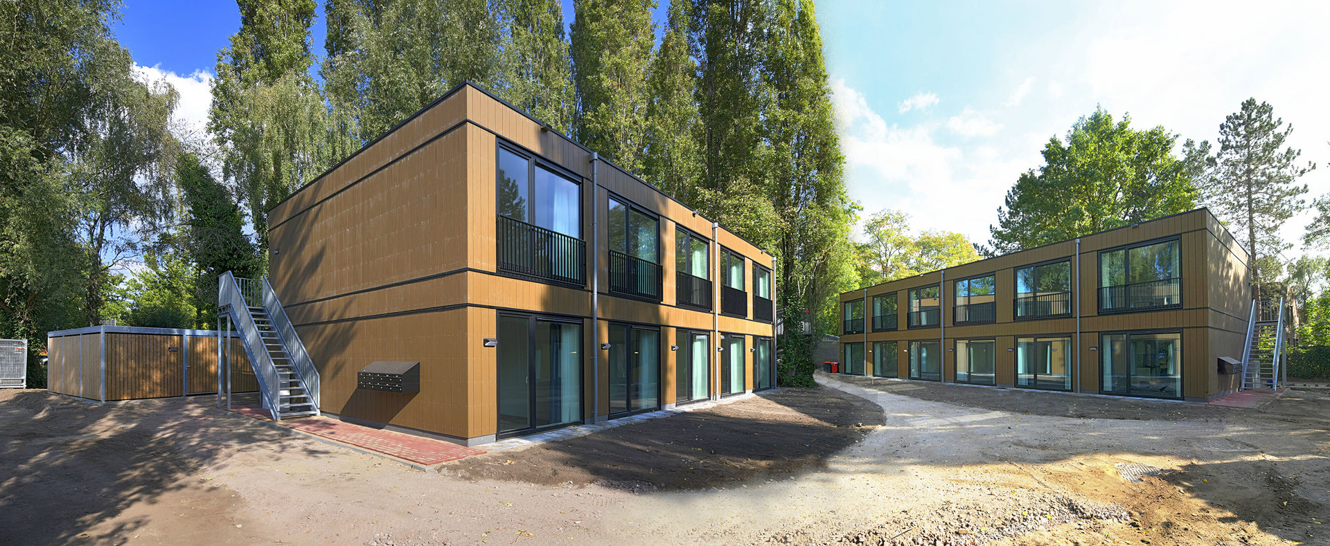 De woningen zijn modulair gebouwd. Dit betekent dat ze in een fabriek zijn gebouwd en op de bouwlocatie in elkaar gezet. Het is een snelle en efficiënte manier van bouwen, met dezelfde kwaliteit als permanente woningen. Deze woningen blijven hier minimaal 15 jaar staan.