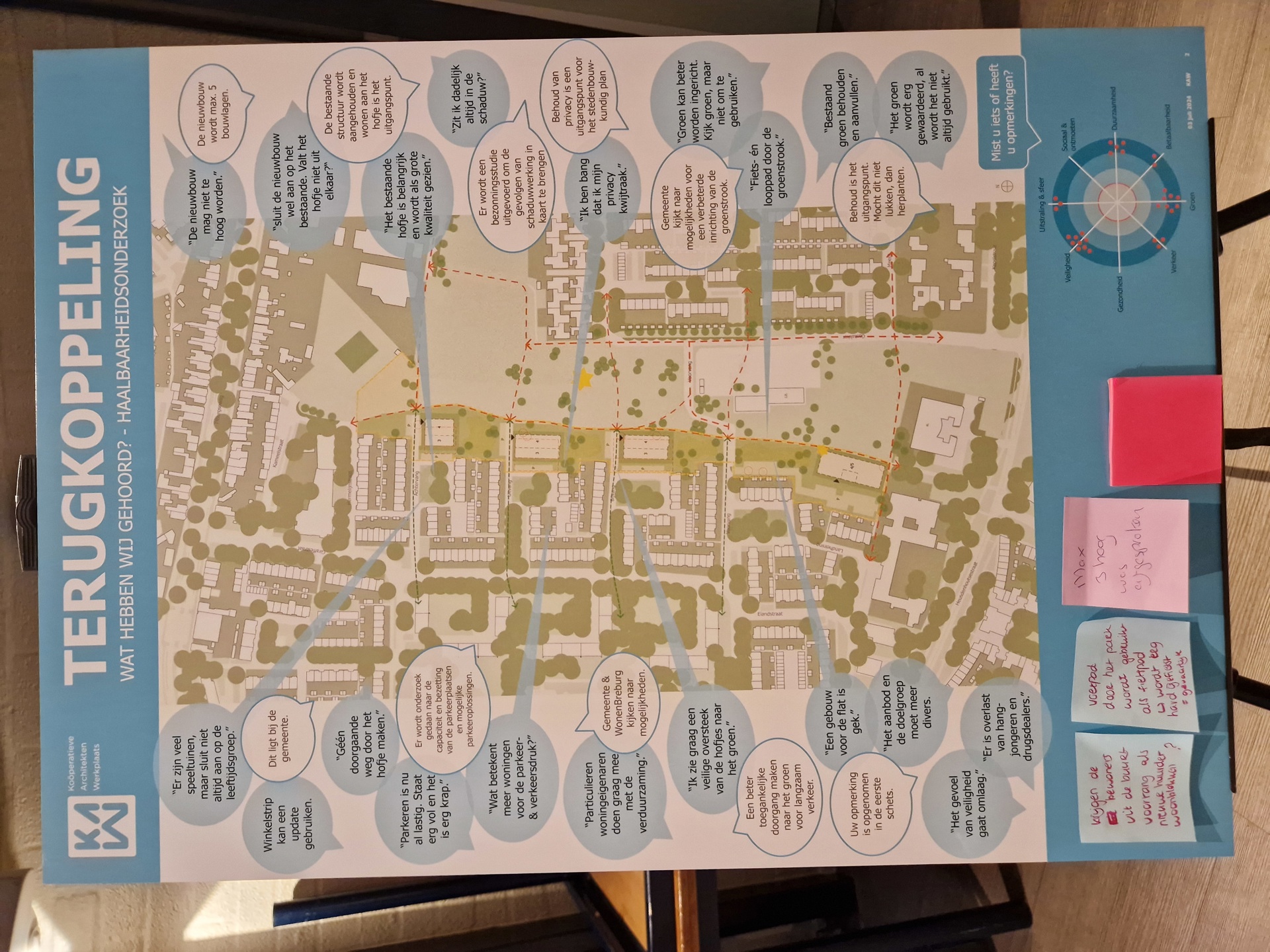 Samen met buurtbewoners, de gemeente, KAW architecten en Maas-Jacobs Vastgoed hebben we gesproken over de toekomst van de buurt: het gebied in en rondom de woningen aan de Achtervang, Uitvang, Bijvang en Voorvang in Breda. In 2024 vond hier een haalbaarheidsonderzoek plaats naar de mogelijkheden om gezinswoningen te vervangen door appartementen in verschillende prijsklassen, waarbij ook de kwaliteit van het gebied verbeterd kan worden. In het onderzoek is gekeken naar manieren om hitte en wateroverlast tegen te gaan en de groenstrook beter in te richten. Tevens kan de nieuwbouw een voorkant krijgen aan de groenzone tussen Brabantpark en Heusdenhout, waardoor de sociale controle in de groenzone verbetert.
