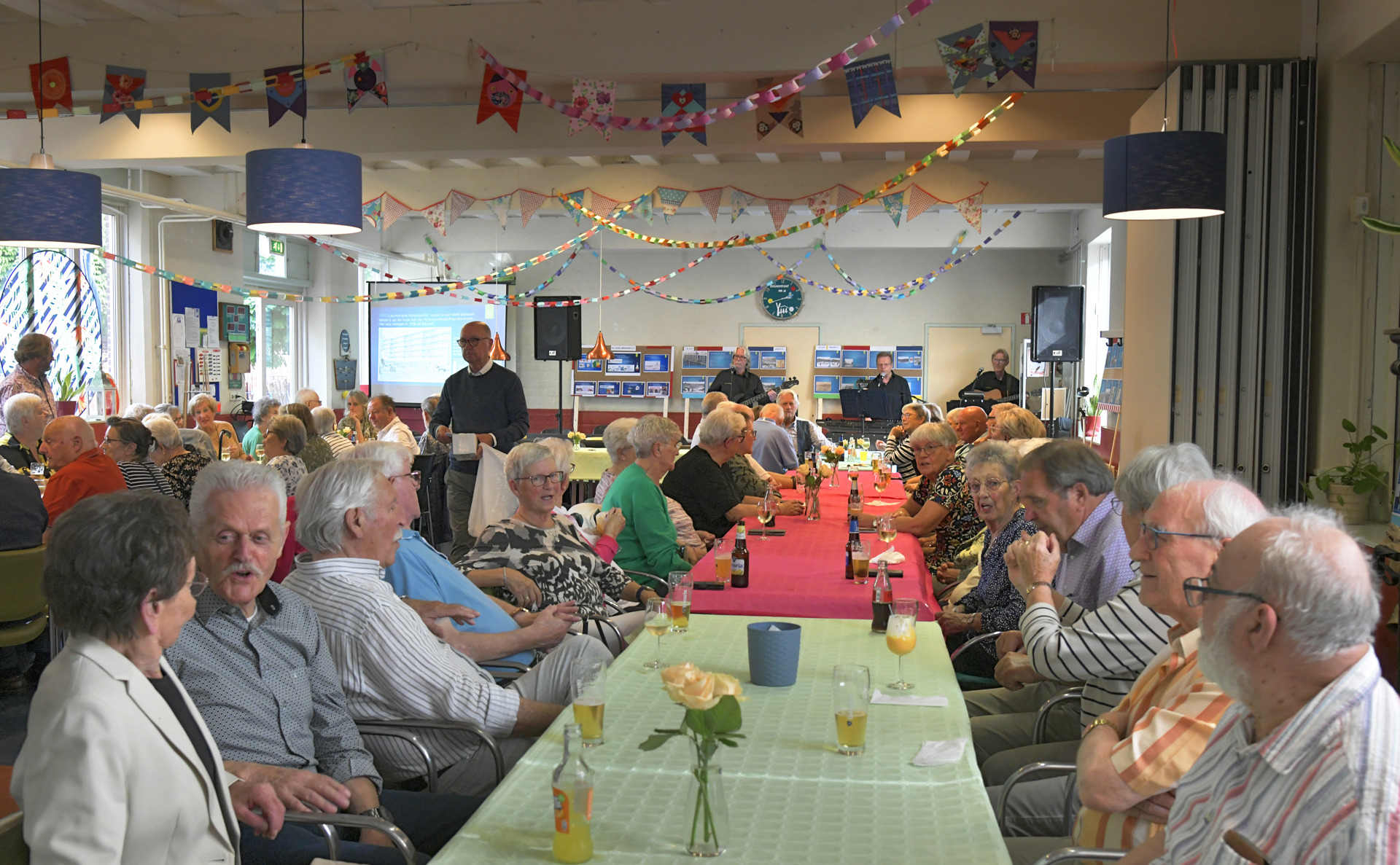 Dit najaar was het precies vijftig jaar geleden dat de flat aan de Hart van Brabantlaan werd opgeleverd. Dat werd gevierd met een gezellig jubileum. In wijkcentrum In de Boomtak stonden de bewoners met een lunch en woordjes stil bij het jubileum. De jubileumen bewonerscommissie begon een jaar geleden al met de voorbereidingen. Frans maakte een PowerPoint, met de geschiedenis van de Berkenflat en de omgeving, die de hele middag op een groot scherm in het buurthuis te zien was.