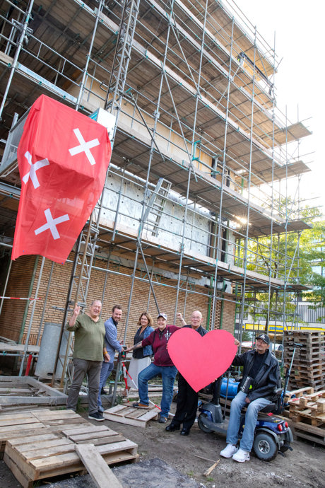 Betere een goede buur dan een verre vriend. Dat is de gedachte achter het gemengd wonen project in de Rijpstraat in Breda. Daarom ging donderdag 22 september, naast een vlag, ook een hart omhoog om het hoogste punt te vieren. In dit nieuwbouwcomplex ontstaat straks een levendige community waar iedereen meedoet en meetelt. Of je nu jong of oud bent, alleen of met z’n tweeën, met of zonder hulpvraag. De bewoners kiezen er bewust voor om een goede buur te zijn. Samen een kop koffie drinken, een buurtactiviteit organiseren, een handje helpen bij het plakken van een fietsband of bij de administratie. Zo ontstaat een woonplek waar iedereen zich thuis voelt.