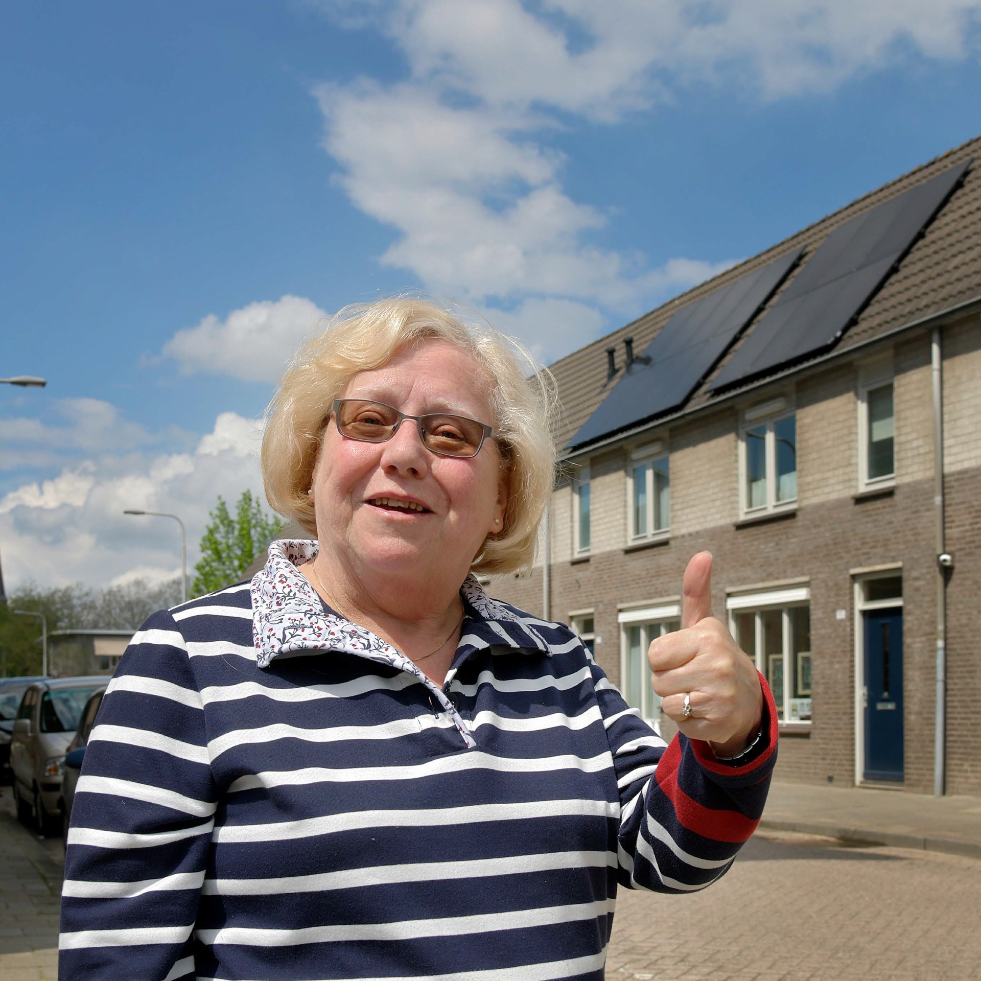 Zonnepanelen zijn hot! Zonne-energie is duurzaam én kan de energiekosten flink omlaag brengen. En goed nieuws: sinds kort kunt u ook bij WonenBreburg zonnepanelen aanvragen. WonenBreburg regelt het. Leonie de Laat (72) uit de Tilburgse wijk Theresia is een van de eerste huurders waar de zonnepanelen gelegd werden. “Zonder WonenBreburg had ik dit niet kunnen doen; ik ben er heel blij mee. Laat de zon nu maar schijnen!”