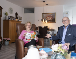 Als twintigers trouwden Ad en Joke. Maar beiden verloren hun partner. Ad werd in 1998 weduwnaar, Joke in 2010 weduwe. Het zorgde voor veel verdriet, maar de zon ging weer schijnen. Ad vertelt: “Op een dansavond kwam ik in 2014 een prachtige vrouw tegen. Joke. We praatten, dansten volop en wisselden telefoonnummers uit. Niet om te appen, maar om te bellen! Al snel was duidelijk dat we elkaar méér dan leuk vonden en kregen we verkering.” In september 2022 verhuisde Ad naar een gelijkvloerse woning aan de Paduastraat. Joke: “Ad vroeg of ik hier wilde komen wonen. Ik wilde wel, maar wilde mijn vertrouwde huis niet verlaten. Maar ja, ik word ook ouder en alles op één etage is ook wel fijn.”