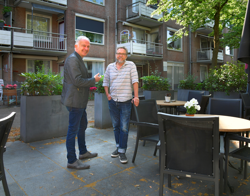 Dat de buurtfunctie nu tóch blijft bestaan, is mede dankzij het lef van WonenBreburg, benadrukt Ralf Embrechts (links op de foto) van MOM Tilburg. “Ze hebben hun nek uitgestoken door goed te luisteren naar de buurt. En zorgvuldig te kijken naar wat er al is.”