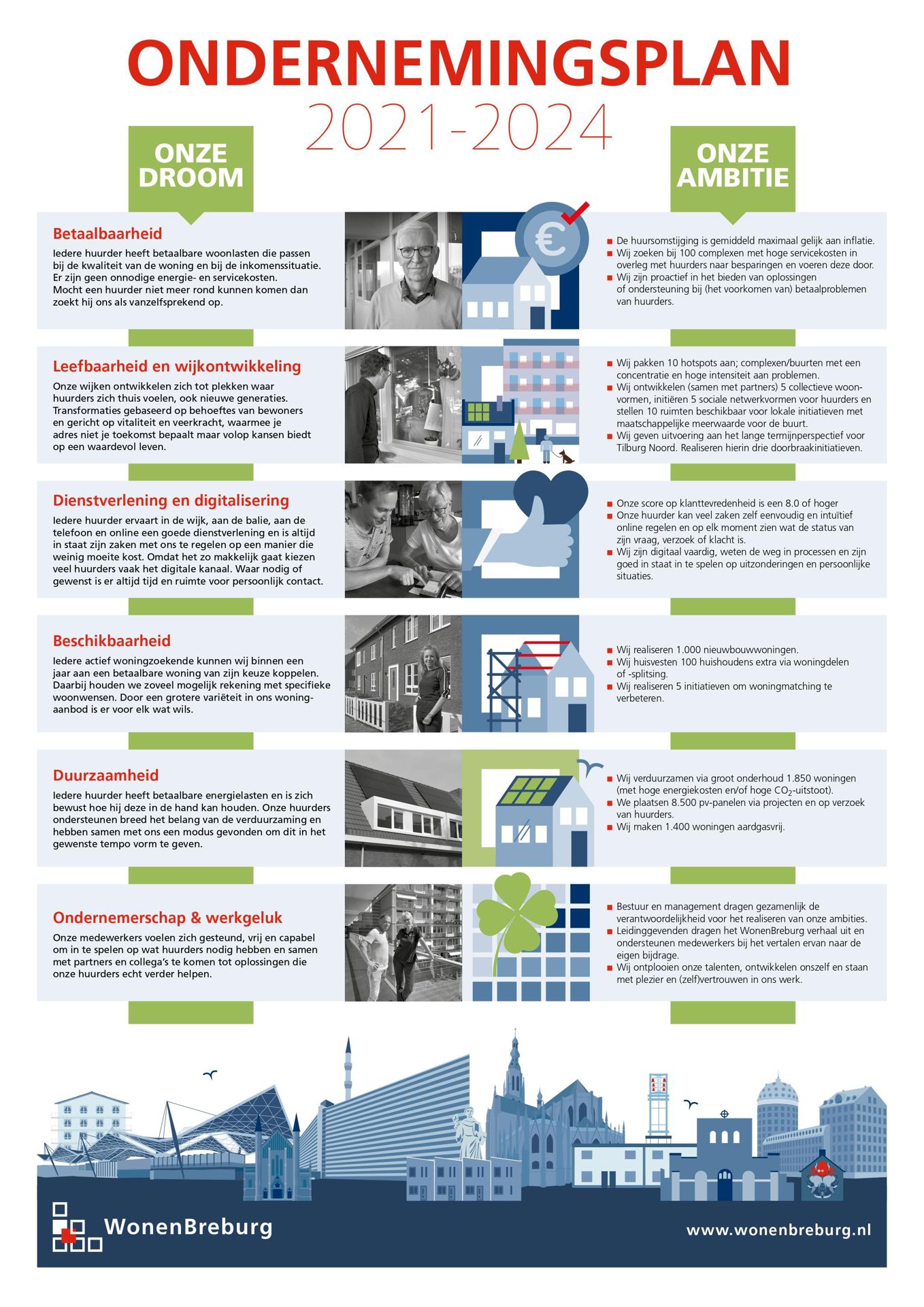Betaalbaarheid blijft één van de belangrijkste speerpunten. We verleggen daarin de focus van huurprijs naar totale woonlasten. We willen dat onze huurders een goede dienstverlening ervaren, met aandacht en waarin huurders gehoord worden.